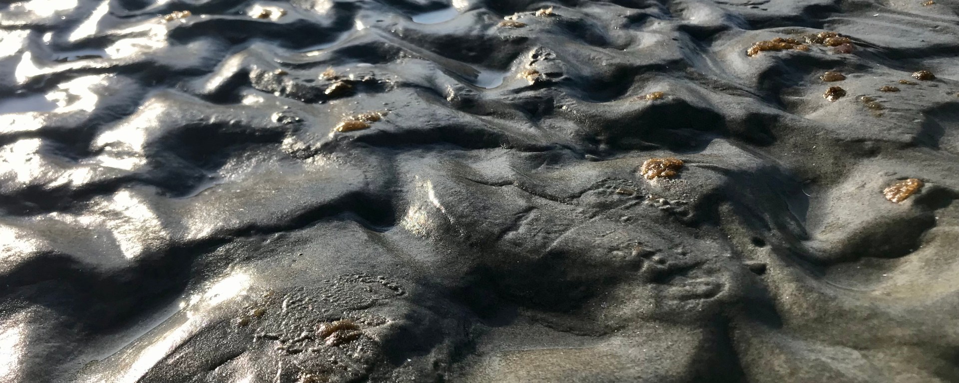 IMV: Hoy, el día en que redacto esta parte de nuestra conversación, visitamos una playa. No era como las playas de Puerto Rico: no había árboles cerca ni palmeras. A las seis de la tarde, en julio, la marea está baja, y puede uno ver la formación de rocas que usualmente yace cubierta de agua. La arena es de un delicado gris oscuro. Su superficie, ondulada, con valles y crestas, ha tomado sus formas no del baile del viento imprimiéndole sus pisadas, sino de la dinámica de movimiento de cada grano, individualmente, sobre su superficie, con sus trayectorias alargadas y asimétricas, levantándose abruptamente de la cama de arena, para luego estirarse viento abajo mientras es barrido. Los niños querían quitarse los zapatos y sentir la arena. Yo les repetía que simplemente la tocaran con sus manos (tan sólo para evitarme el trabajo de tener que limpiar sus pies más tarde). Ellos argüían que no era lo mismo tocarla con las manos que sentirla con los pies. Ante la posibilidad de que mi terquedad práctica fuera a prevenirles de una experiencia sensorial importante, les dejé quitarse los zapatos. “Está fría,” dijo uno. Yo la toqué con las manos y no la sentí así. Quisiera decirte que me quité los zapatos también y me permití sentir la arena fría bajo los pies, pero no es así que termina la historia. Y se me ocurre que a veces cuando uno escribe, también hace lo mismo, a veces a propósito, porque quieres sentir pero eliges cuán cerca o cuán lejos. Escojes la magnitud de tu vulnerabilidad ante el sentimiento, del mismo modo en que escoges tu cercanía o tu aproximación al paisaje. ¿Existen cercanías a ciertos temas, a ciertos paisajes de la experiencia humana, que aún no te permites? ¿Cómo manejas/ navegas esas distancias?